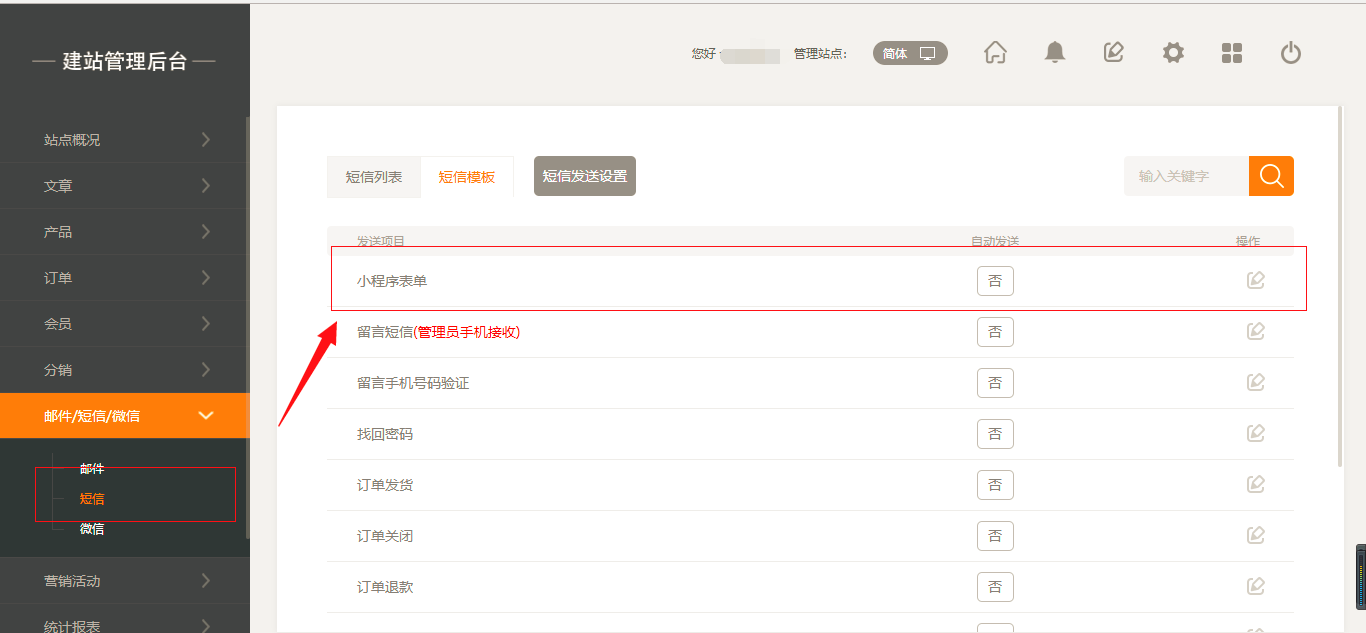 小程序短信新增表单模板